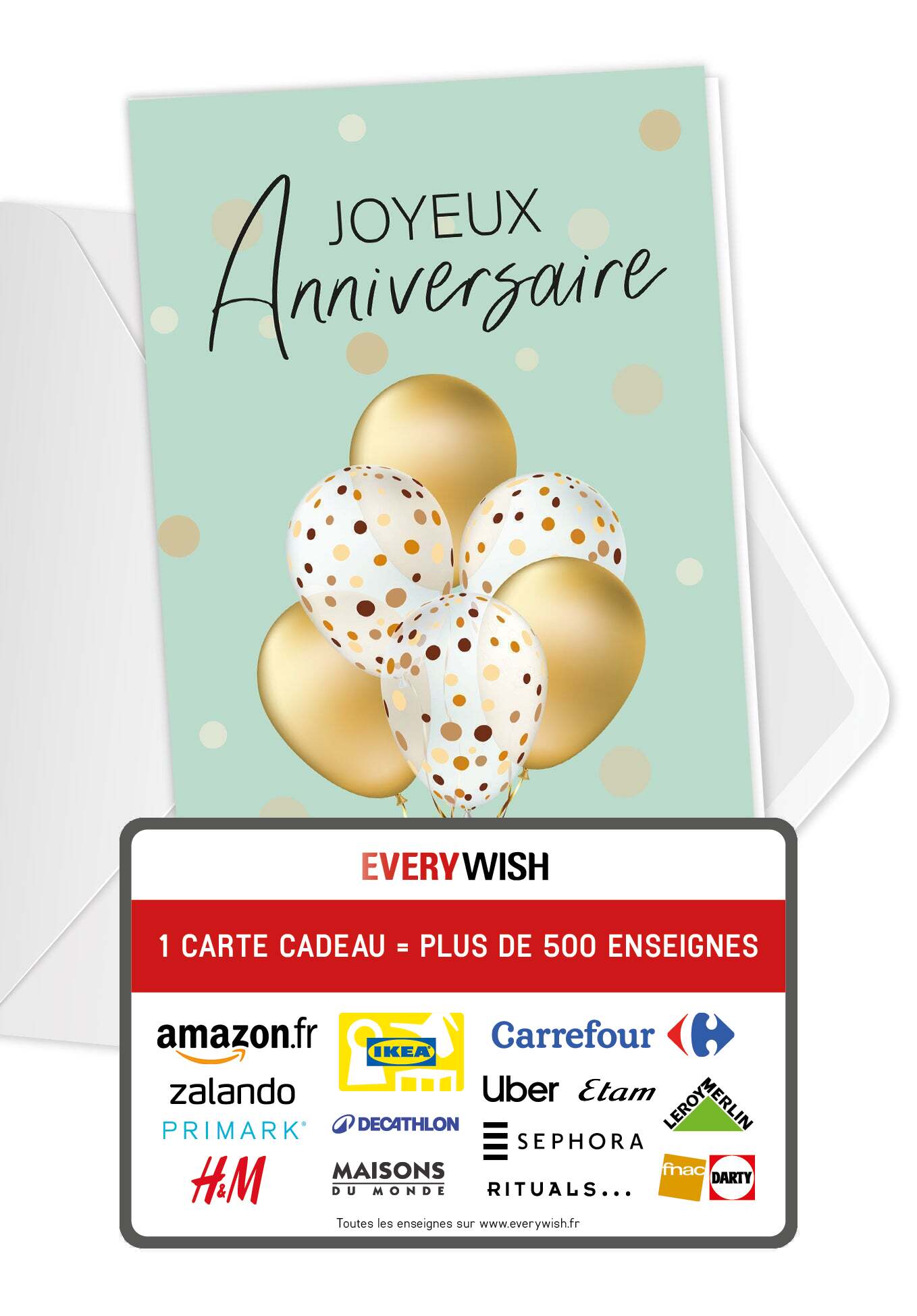 La carte cadeau EVERYWISH est le cadeau idéal : elle pourra être échangée par son bénéficiaire (24h après qu’il l’ai téléchargée) contre une carte cadeau à choisir parmi plus de 500 enseignes partenaires.