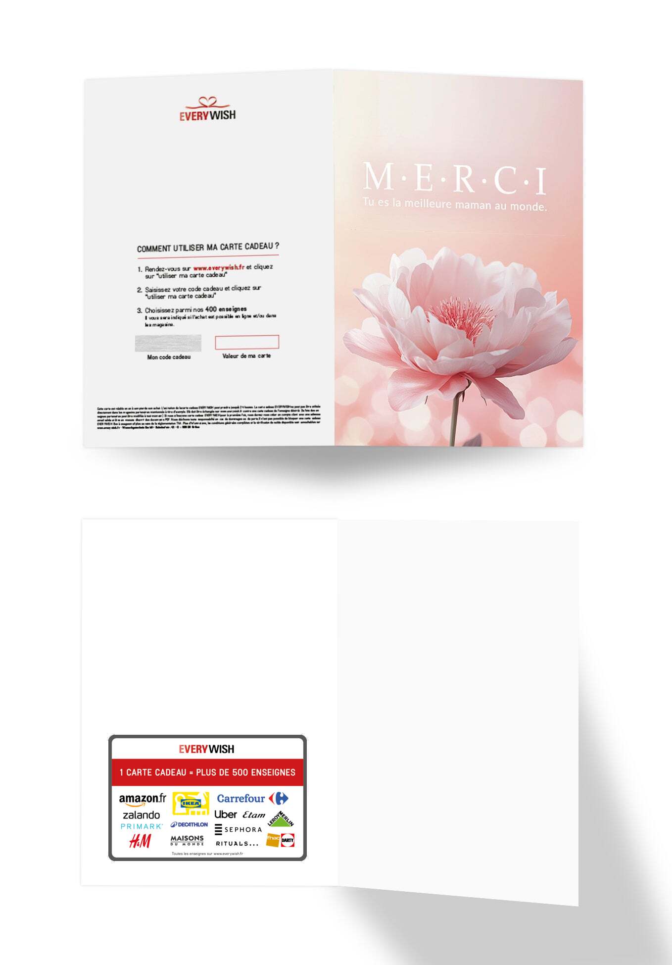 La carte cadeau EVERYWISH est le cadeau idéal : elle pourra être échangée par son bénéficiaire (24h après qu’il l’ai téléchargée) contre une carte cadeau à choisir parmi plus de 500 enseignes partenaires.